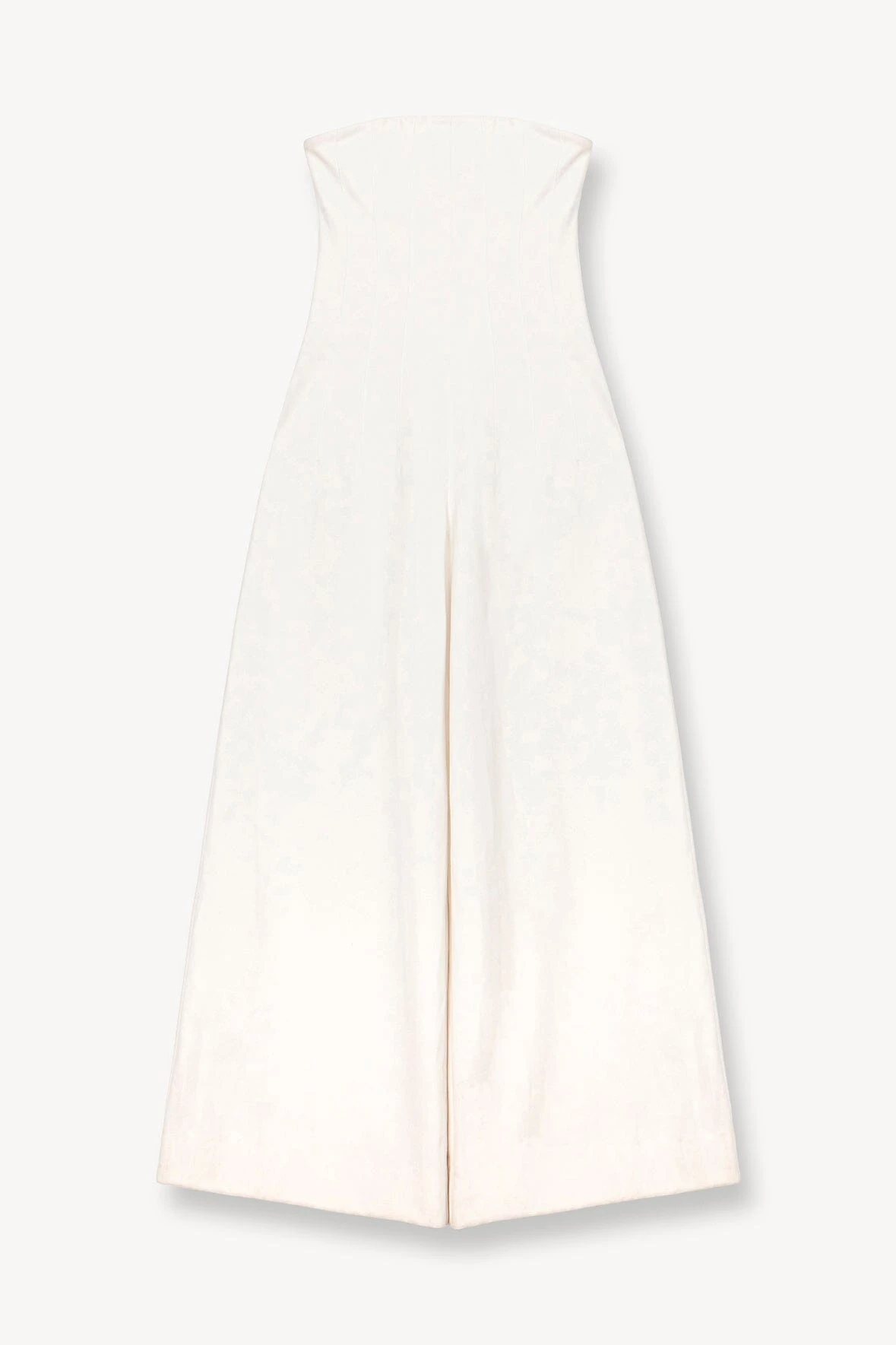 The Benjamin Jumpsuit is our modern update to occasionwear. This style is a strapless, wide-leg jumpsuit, featuring corset seaming through the bodice and a center back zipper; crafted in our soft Tailoring Crepe fabric.Â