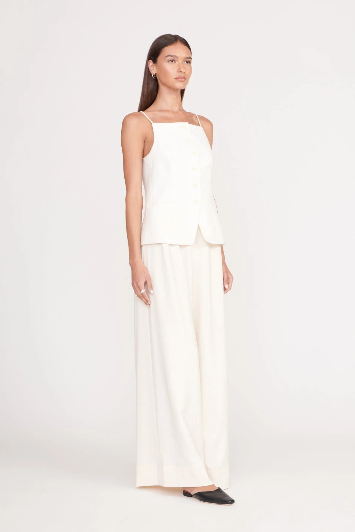 A sweeping wide-leg pant, the Caleb is an essential high waist trouser for any wardrobe. This style features corset seaming along the waist and a hidden zipper closure at the side.Â