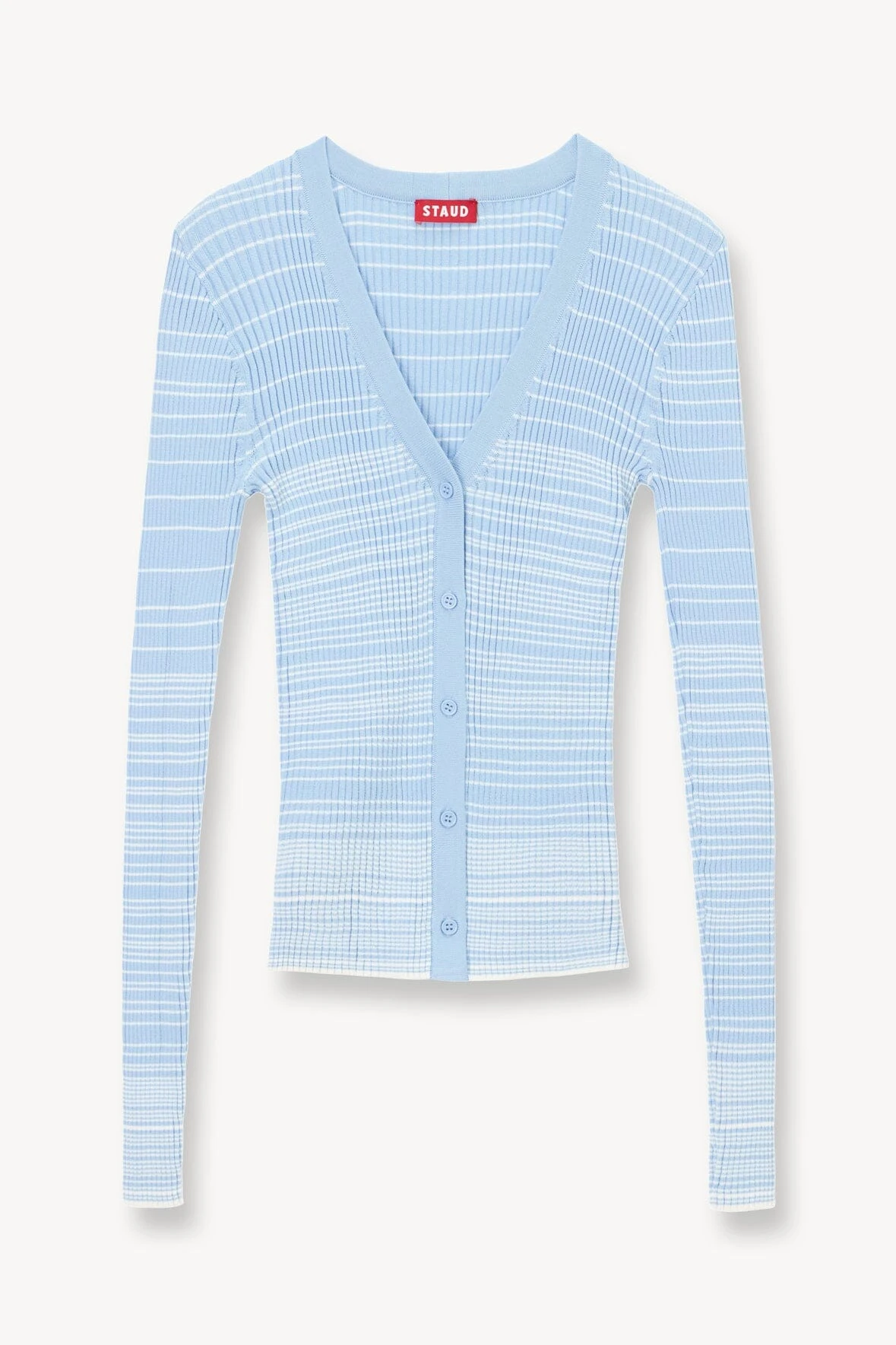 Our best-selling cardigan in a new ombre stripe pattern. The Cargo Sweater can be easily layered or worn as a top on its own. This style is constructed out of a stretchy rib knit fabric.