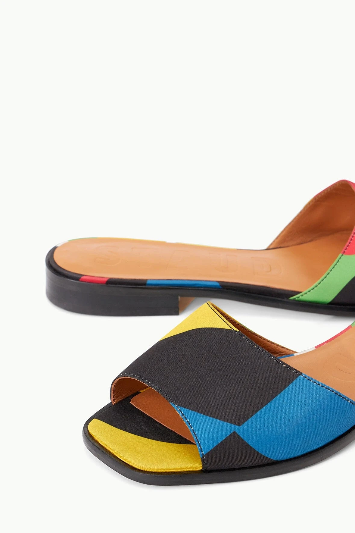 A slip on sandal with singular toe strap and low block heel. The Caspian is constructed out of the same fabric as our ready to wear and can be worn for a coordinating look.Â
