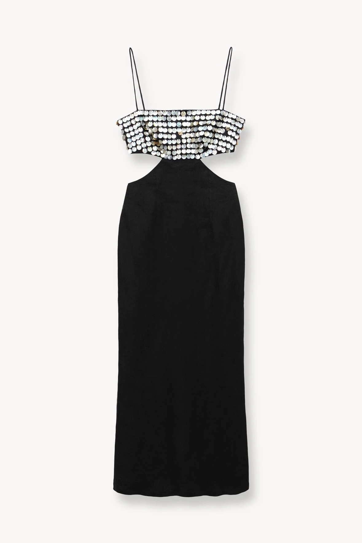 The Jada Dress is an ankle-length linen column dress, perfect for day-to-night dressing. With delicate spaghetti straps and a mother of pearl shell embellished bodice, this dress pairs back to sandals or heels for a versatile Summer look.
