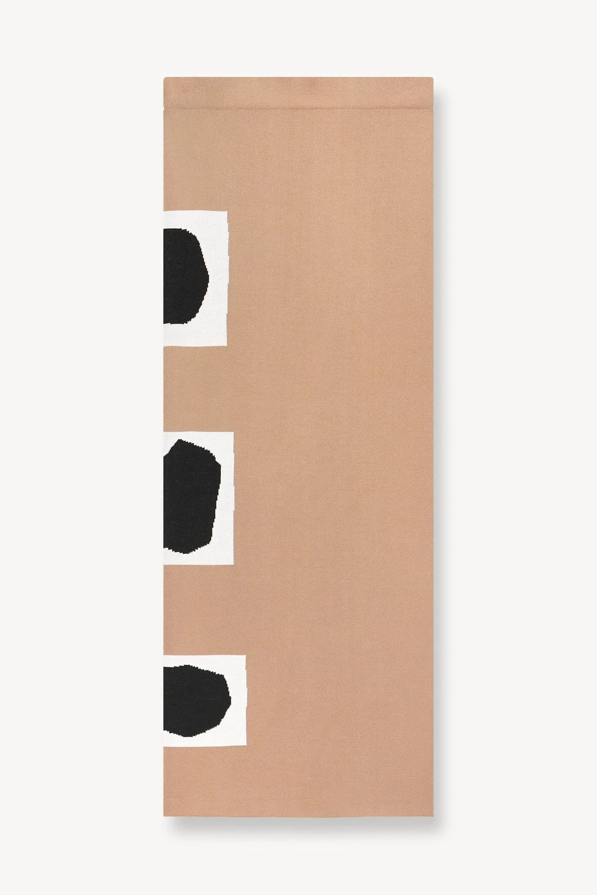 A fitted midi-length skirt made of a compact knit fabric. This style features a geoscape surface-inspired block design on the side.