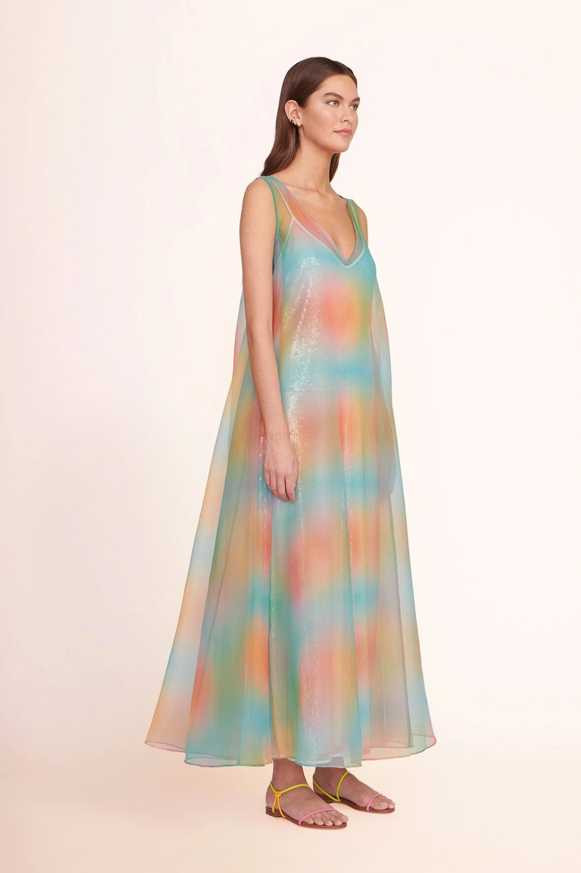 A flat sandal with multi-colored tubular straps, the Laurel Sandal features a leather cord toe and ankle strap.