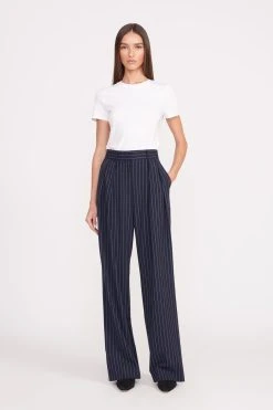A classic pinstripe update to our wide leg pleated trouser, this style completes a suit when worn with the matching City Blazer.Â