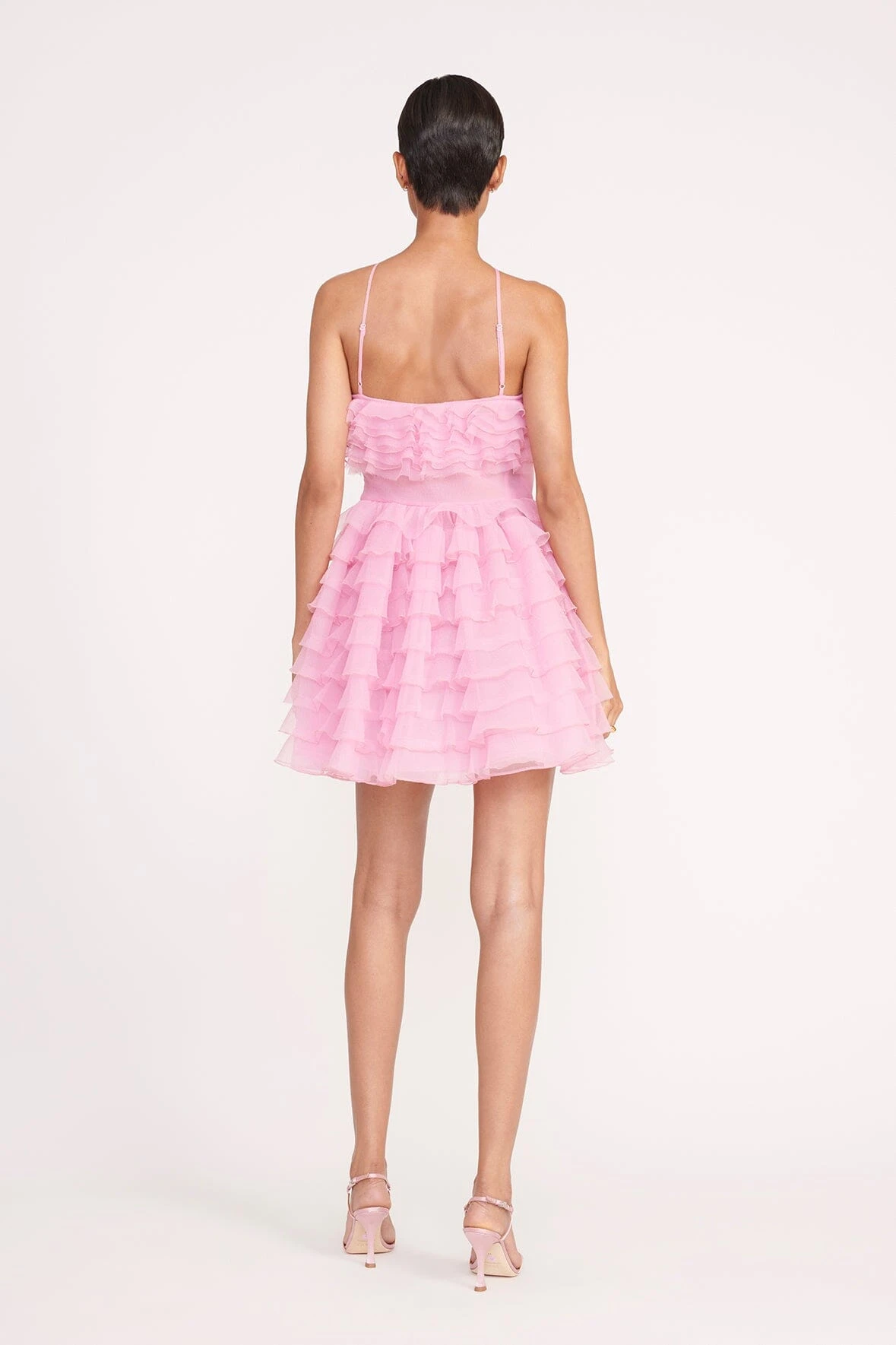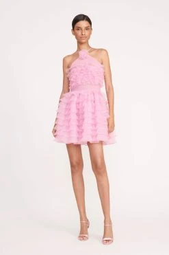The Mini Florian Dress is a new cocktail dress from the Holiday collection, featuring a tiered ruffled organza bodice and skirt, accentuated with a waist band detail. This dress has a halter neckline with a delicate tonal organza flower.