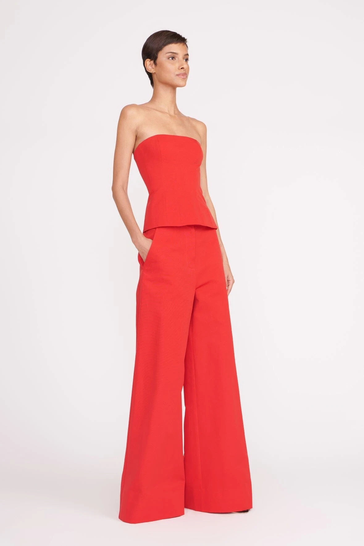 An extra-wide leg pant with full length, the Oak Pant features a grosgrain fabric and can be worn with the Woodgrain Top for a coordinating look.