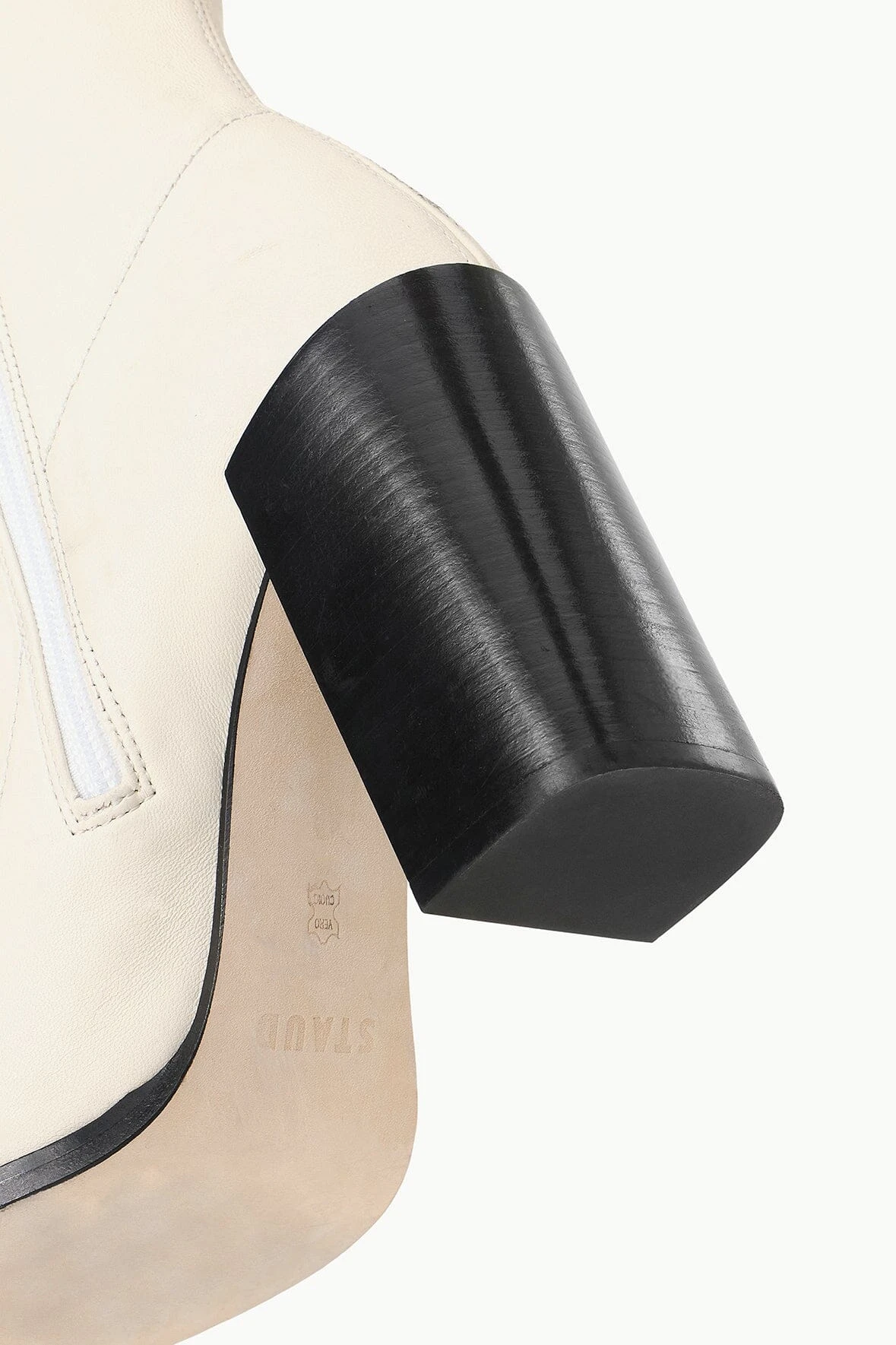 The Paz Over the Knee Boot is a stretch leather boot with a stacked heel. This style is a knee-high boot, perfect for pairing under trousers, with a mini dress, or skirt.Â