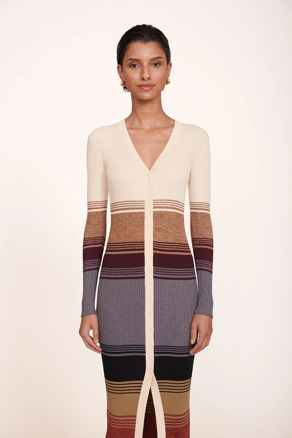 Our signature style, the Shoko Sweater, can be worn as a cardigan or dress. This style is made out of a stretchy, comfortable compact rib knit fabric. This seasonal update completes a matching set when paired with the Nash Pant.