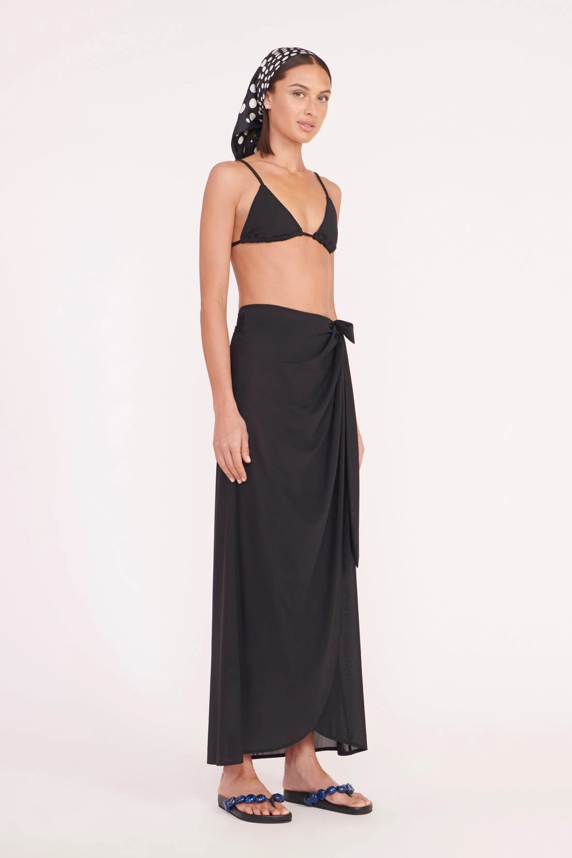 A versatile accessory, this silk scarf can be worn as an accent or even as a strapless top tied at the back.