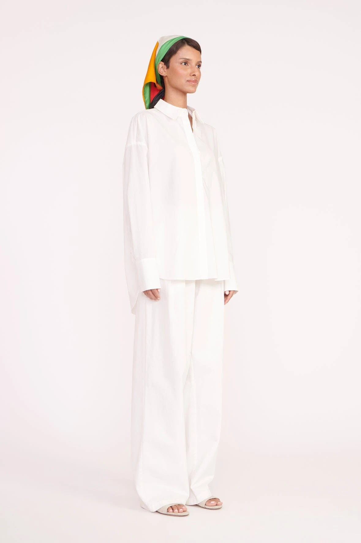 A versatile accessory, this silk scarf can be worn as an accent or even as a strapless top tied at the back.
