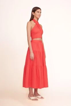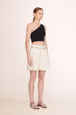 An open toe heel with ankle strap and buckle closure, the Solange features a snake-embossed pattern on leather.
