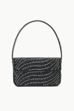 The classic hand-beaded shoulder bag with vegan leather piping. This Tommy update features an all over black bead and metallic stud design with a magnetic snap closure.