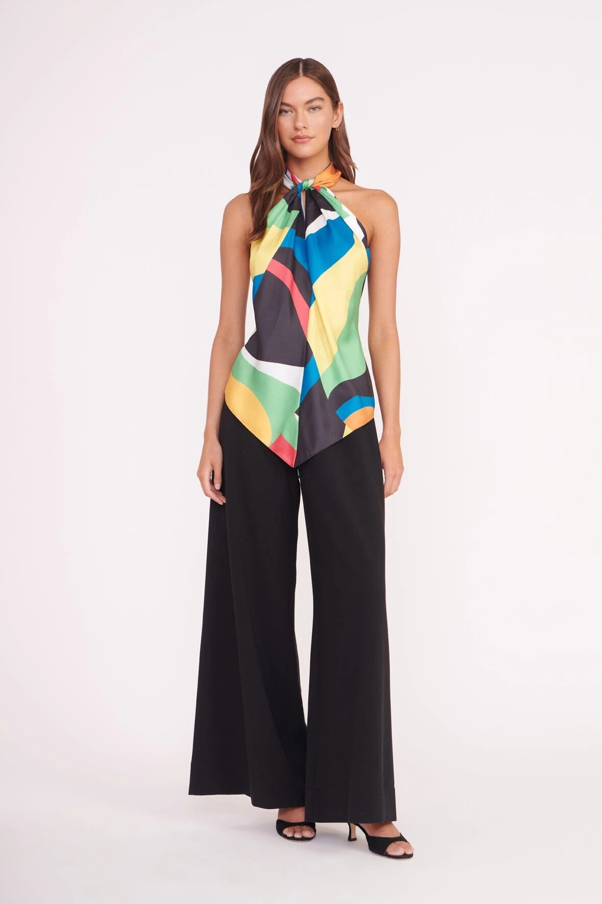 The Tropea Top is a halter top that ties at the neck, featuring a handkerchief hem and an elastic back for an easy fit. This Summer top is featured in our Marble Wave print.