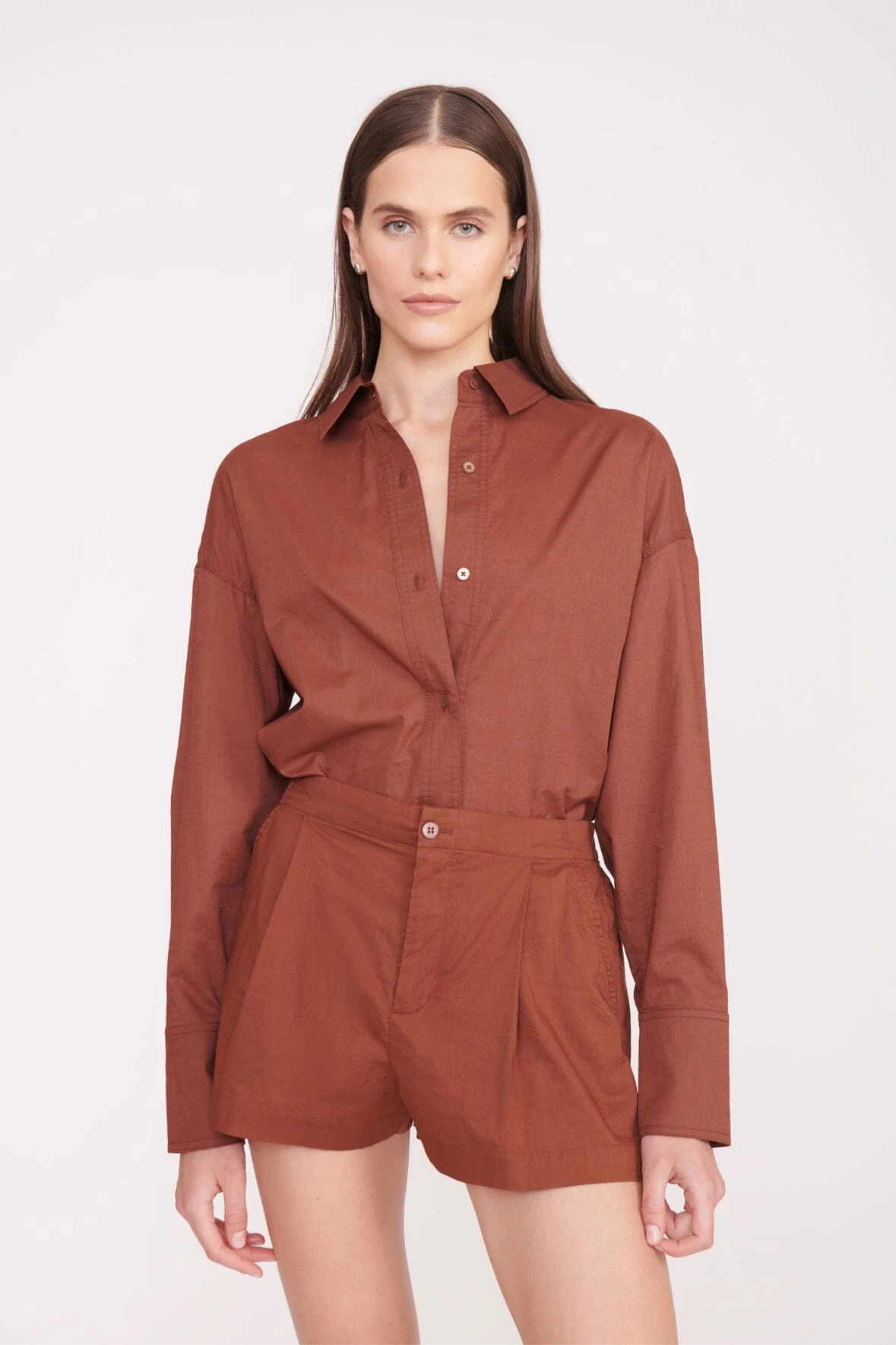 Constructed out of a cotton voile fabric, this style features a pleated tailored front and elasticated waistband on the back. Wear the Zoey Short as a set with the matching Colton Shirt.